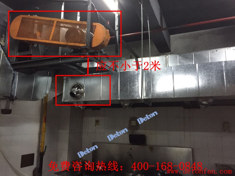 小分隊糾正:風機與煙罩不能靠得太近(不小于2米),否則噪音過大。